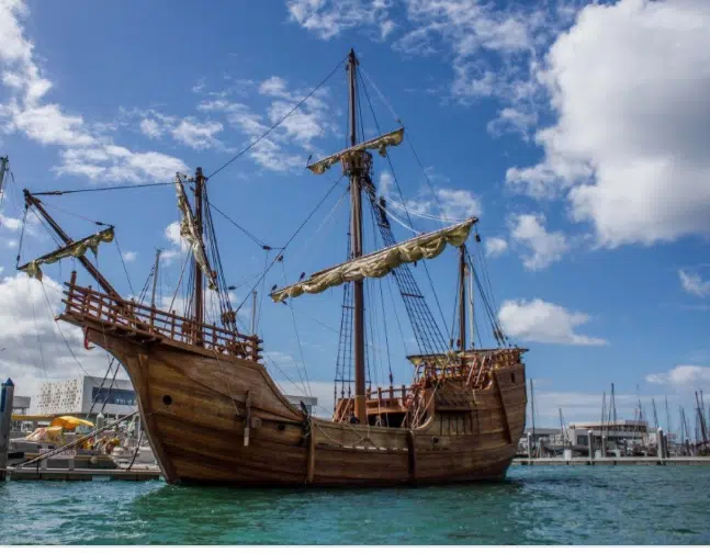 The Nao Santa Maria, a replica of the famous historical ship the Santa Maria that was used by Christopher Columbus to come to America in 1492.