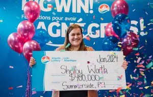A big lottery win for an Islander. Shelby Worth of Summerside tried out the new MEGA 360 Instant Win game. She won a spin on the MEGA 360 wheel, which ultimately saw her win a $400,000 prize.